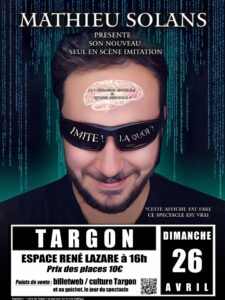 C’est la question que se pose Mathieu dans son spectacle d’imitations. Des personnages de la pop culture en passant par les chanteurs de tous genres, découvrez de nombreux univers grâce à sa large palette vocale. Vous voyagerez entre anecdotes, performance et stand up dans ce seul en scène survolté.
